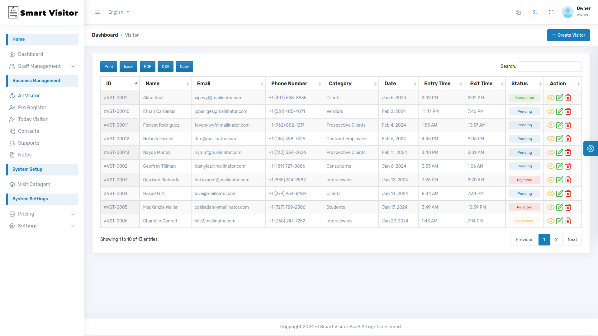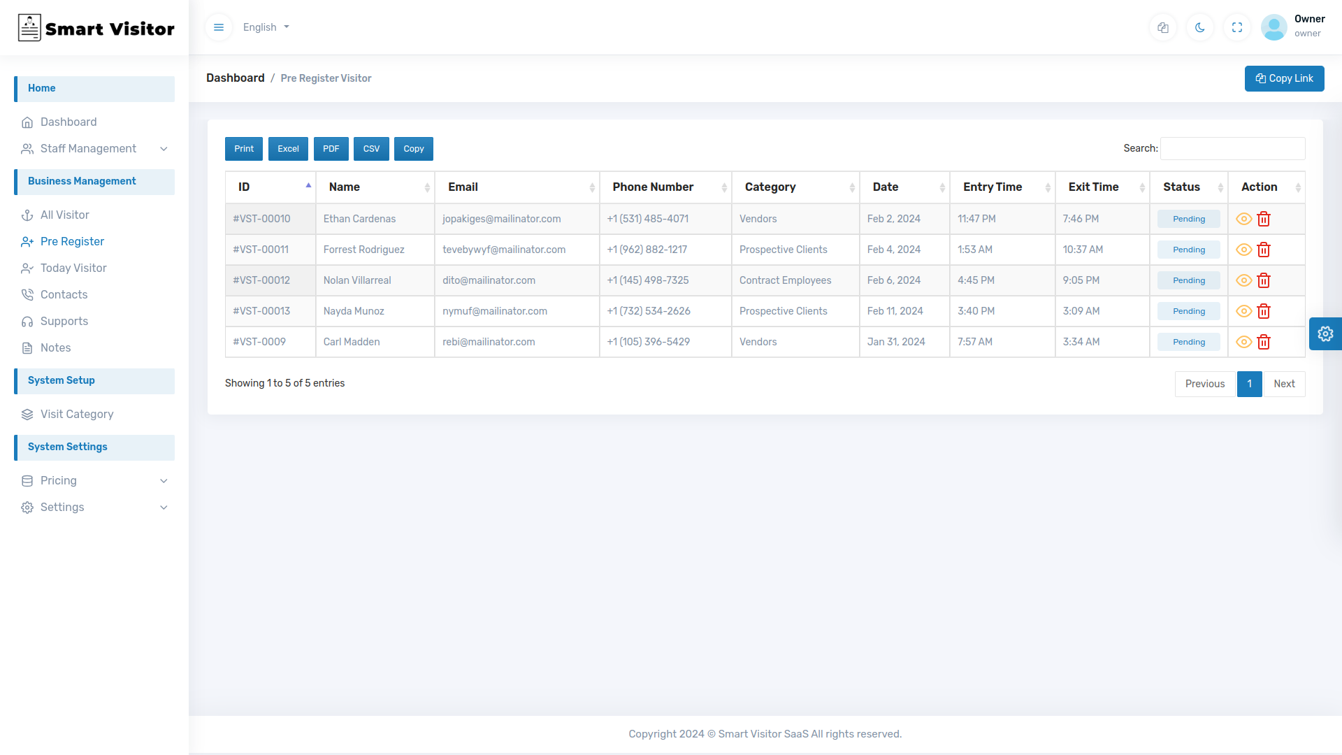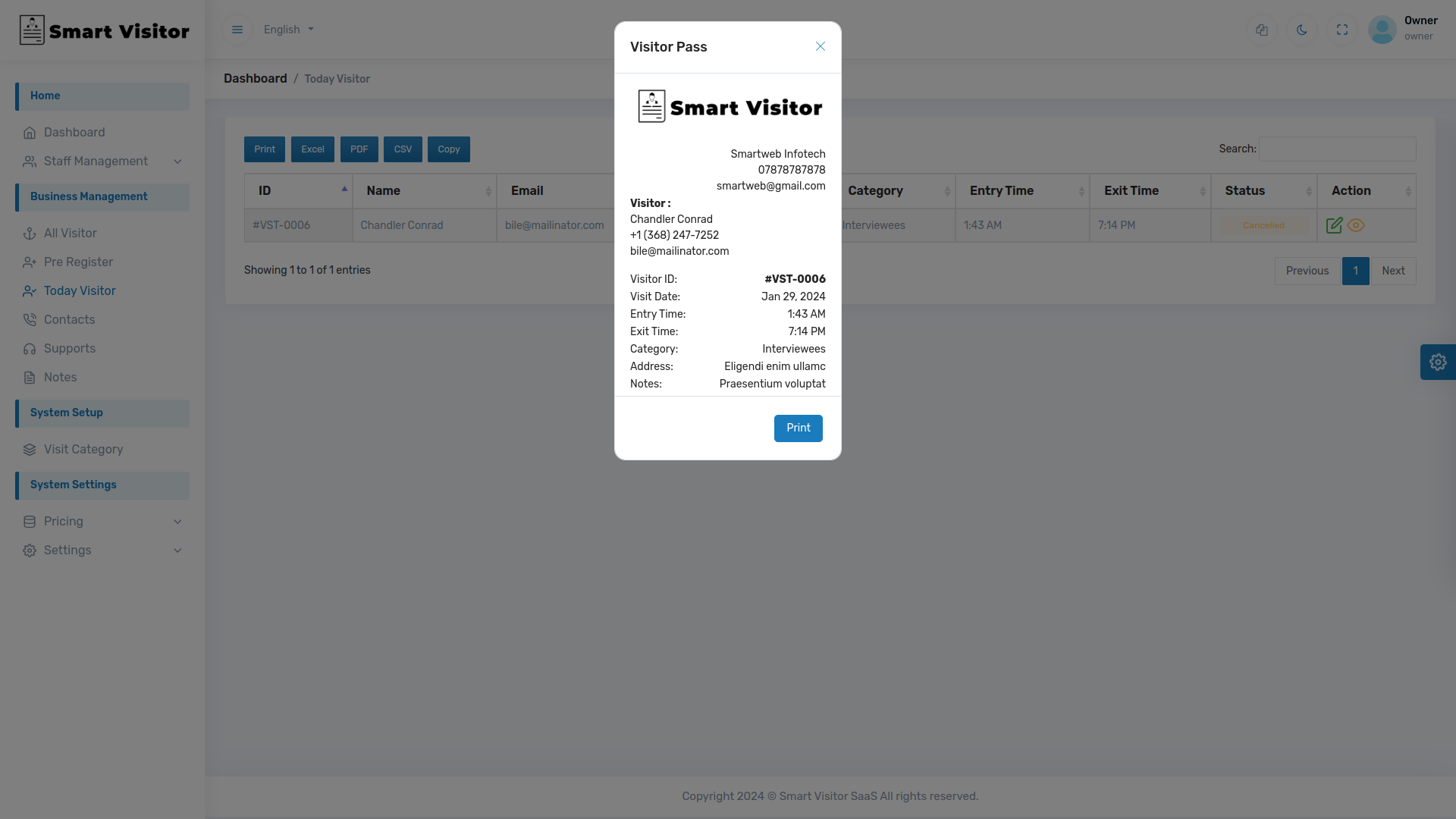 Démo LiveUn système de gestion des visiteurs (SGV) est une solution globale conçue pour améliorer l'efficacité, la sécurité et l'expérience globale des interactions entre les visiteurs au sein d'une installation.